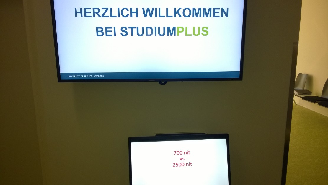 speziell für helle Räume wie Schaufenster, Empfangshallen, wieten wir Displays mit einer Helligkeit von 2500 nit