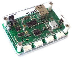 Das io-204 Web Gateway Modul verbindet Sensoren und Aktoren mit dem Internet. Die Konfigutation des Gerätes ist sehr einfach und innerhalb weniger Minuten nach dem "plug and play" Prinzip via Internet.